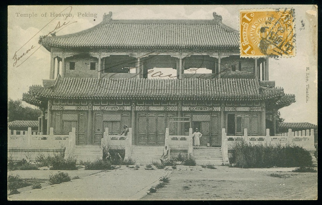 1910 (Apr.) From Peking to Tientsin postcard, bearing C.I.P. 1c. tied by Peking-Shanhaikwan Post Mail train No.2 railway c.d.s., with Tientsin arrival c.d.s. (5.4)