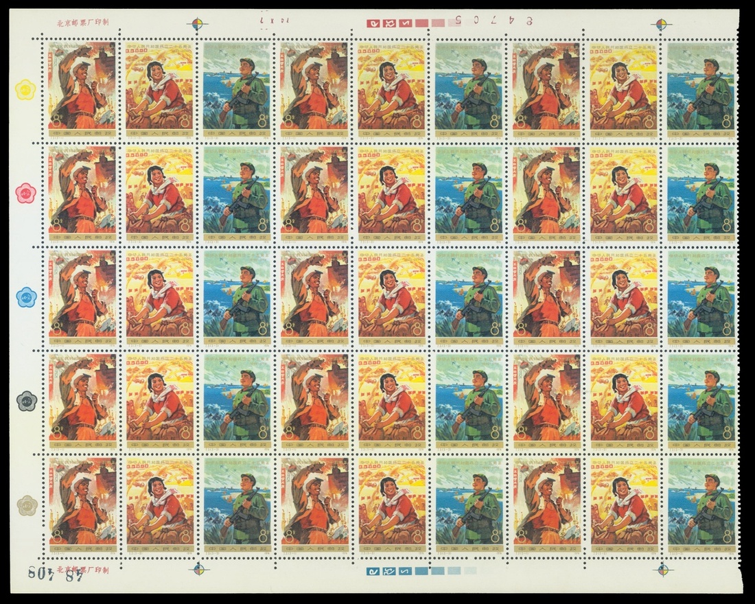 1974 (J3) 25th Anniv. of Founding of P.R.C. (2nd series), block of 45 (3). Yang J5-7