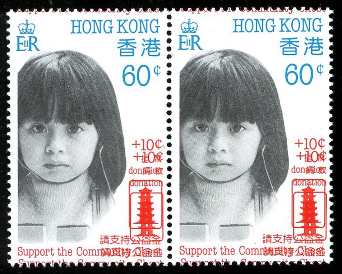 1988 Support the Community Chest Charity, 60c.horizontal pair with red colour double print variety, unmounted mint.