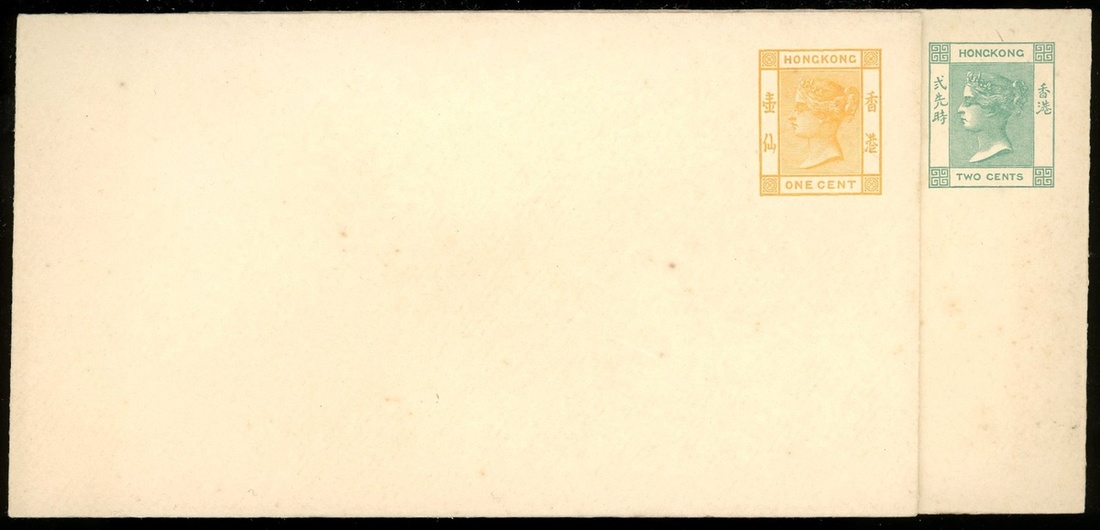 1900 QV Postal Envelope, 1c. yellow (2) and 2c. green (2), unused. Fine.