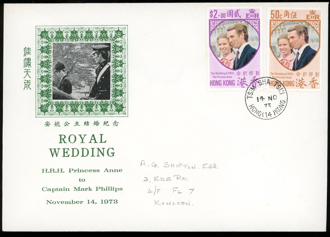 1973 Royal Wedding, CPA first day cover in 2 different colour illustration