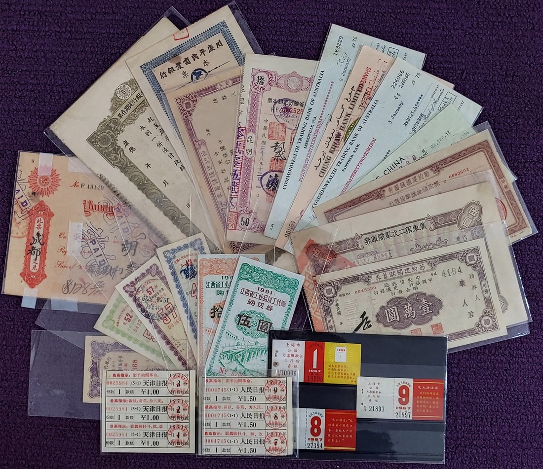 A lot of 23 pieces of various types of bills from the Republic of China to New China, including silver bills of exchange, deposit slips, military bills, industrial coupons, park monthly passes, post office newspaper receipts, etc.