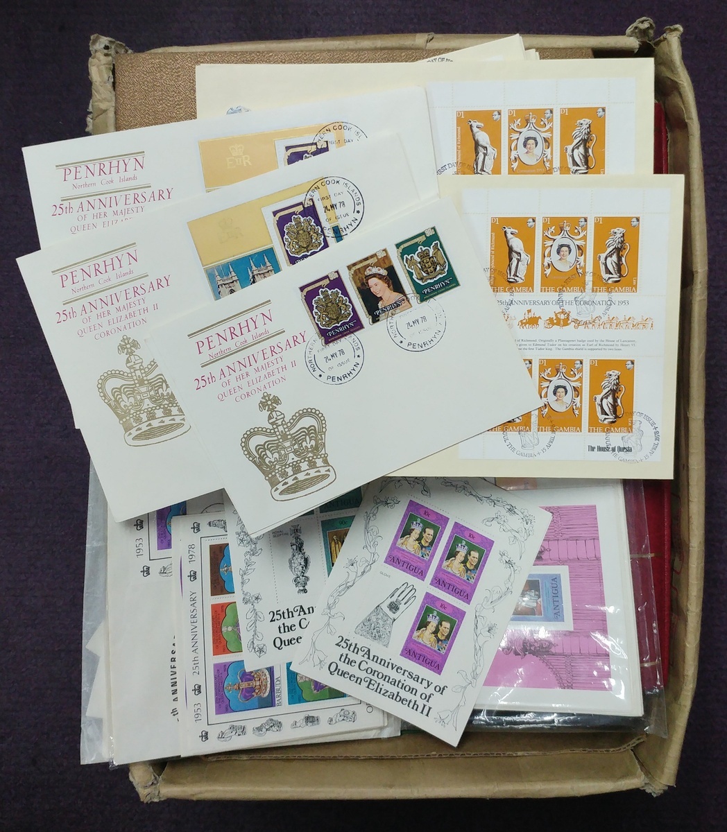 1948- 77 omnibus collections including 1948 Royal Silver Wedding, low values, 1953 Coronation, 1972 Silver Wedding, 1973 Royal Wedding and 1977 Silver Jubilee, also some Great Britain 1980’s to 90’s first day covers and stamp packs.
