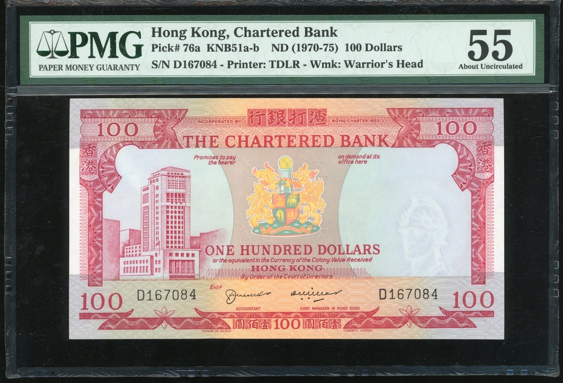 The Chartered Bank, $100, ND(1970-75), serial number D167084, (Pick 76a), PMG 55 about uncirculated.