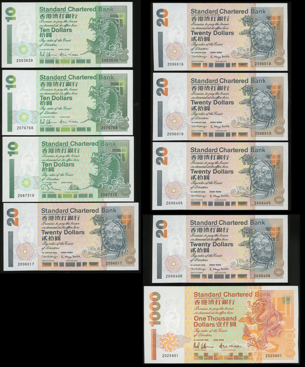 Standard Chartered Bank, group of 9 replacement notes, series of 1992 - 2002, $10 (3), $20 (5) and $1000, 1.1.1994,