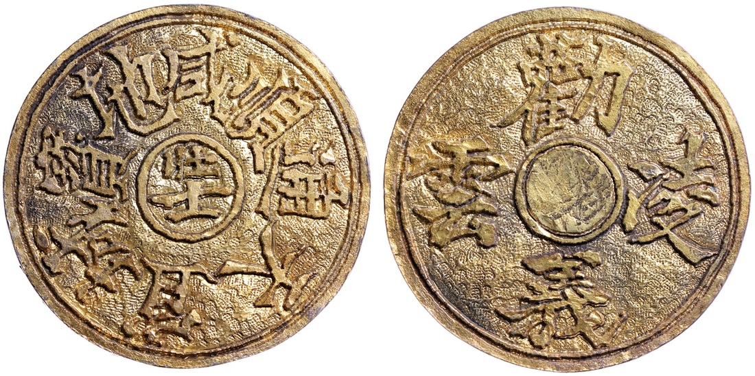 China, Early Republican era, a gold plated silver medal issued by the local organisations of Kwangtung Province to the Revolutionary army, Chinese characters on both side, together with a $10 note of the Chung Hwa Republic, serial number 9672,