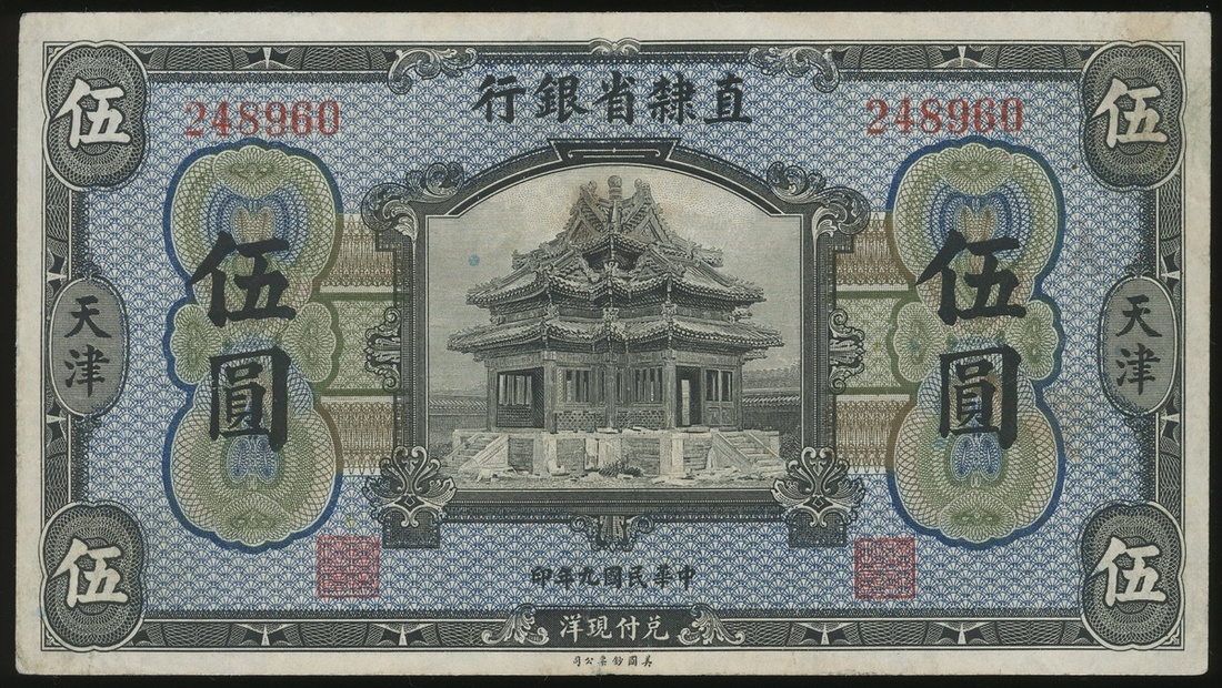 Provincial Bank of Chihli, $5, 1920, Tientsin, serial number 248860, minor stains, good very fine.
