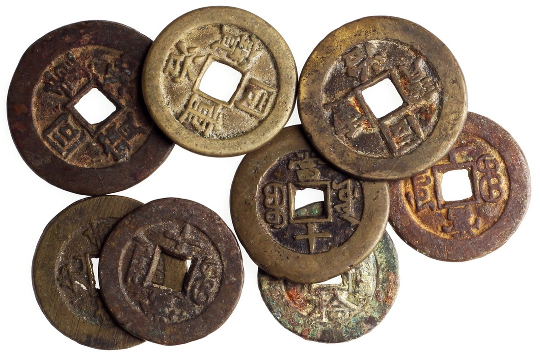 Qing Dynasty, group of 8x 10 cash, Tongzhi Zhong Bao (4) and Guangxu Zhong Bao (4), different mintmarks,