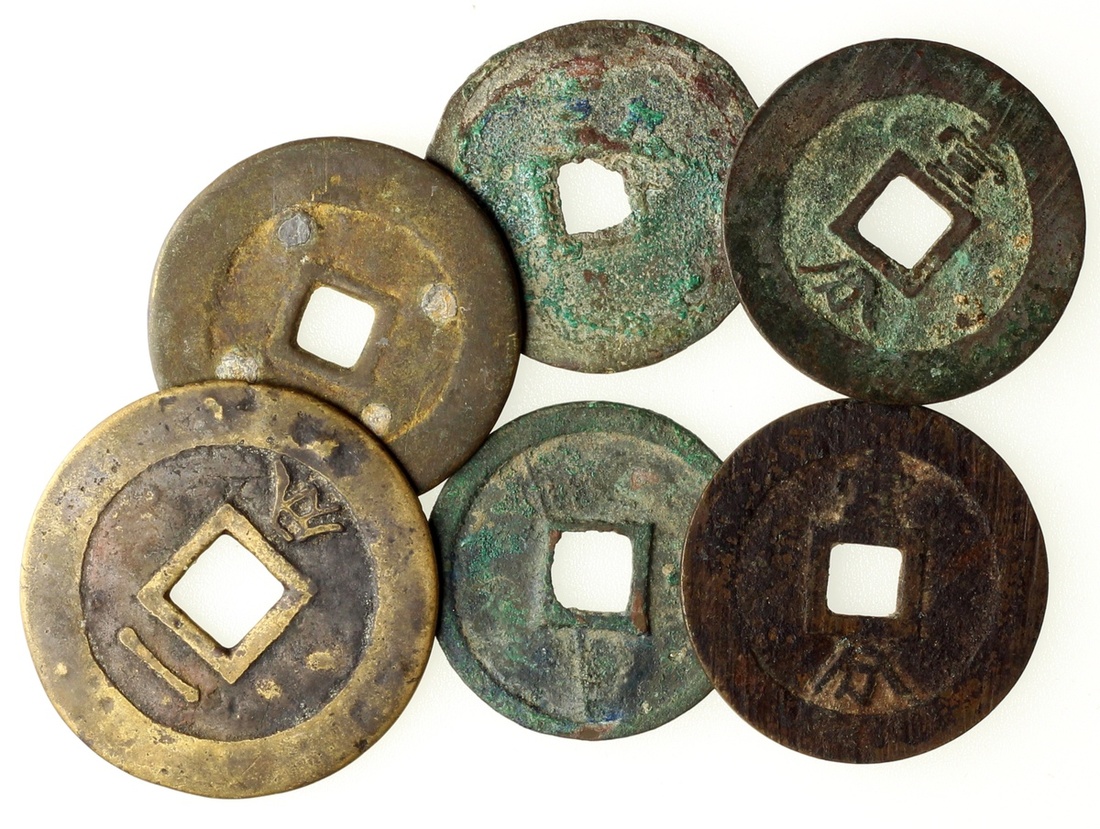 China, an assortment of 6 coins, Zhi Zheng Tong Bao, Yong Chang Tong Bao, Yong Li Tong Bao 1 fen, Yong Li Tong Bao 1 fen (2) and Qing Yuan Tong Bao,