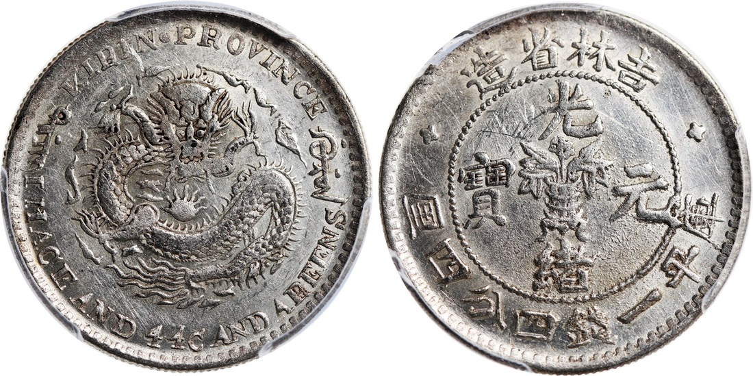Kirin Province, silver 20 cents, Guangxu Yuan Bao(1898), flower at centre on reverse, PCGS AU Details, cleaned.