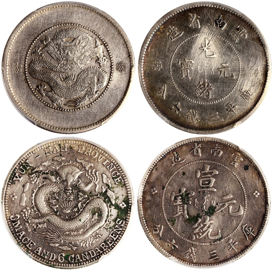 Yunnan Province, lot of 2x silver 50 cents, 1909-11 and 1911,