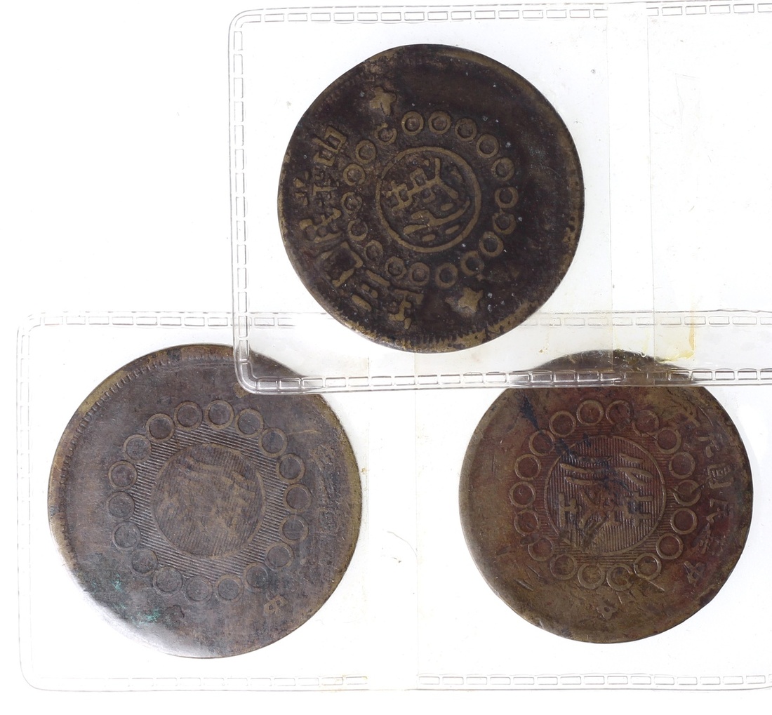 Szechuen Province, group of 3, all with 'Han' at centre, 50 cash (1) and 100 cash (2)
