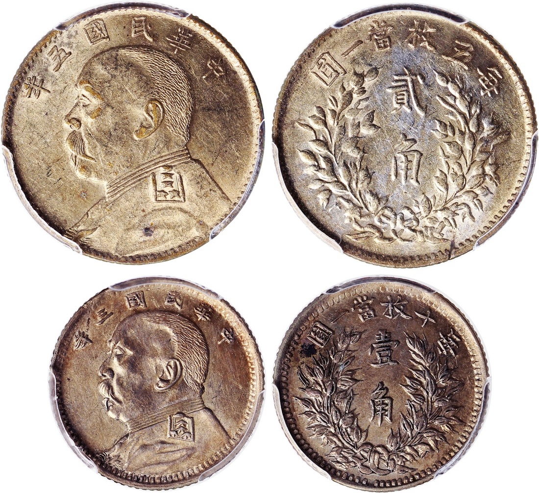 China, Republic, a pair of silver 10 and 20 cents, 1914 and 1916 respectively, both 'Yuan Shih Kai' on obverse, both PCGS holders AU 58 and AU55 respectively.(2)