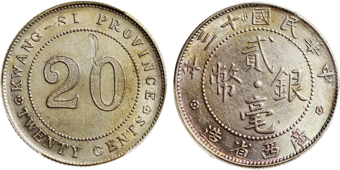 Kwangsi Province, silver 20 cents, Year 13(1924), PCGS AU Details, gouged.