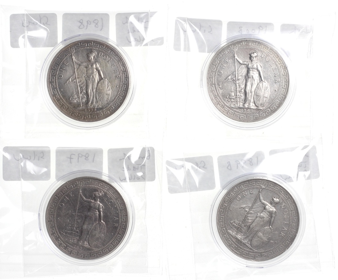 Great Britain, group of 4 silver trade dollars, 1897, 1898, 1899-B and 1900-B,