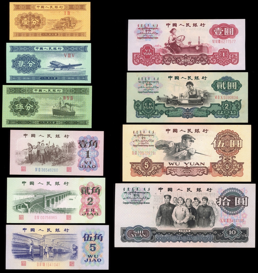 People's Bank of China, 2nd and 3rd series renminbi, 1953-1965, group of 10 notes, 1 fen to 10 Yuan, including a near-full type set of the 3rd series, the 2 Yuan with stars watermark,