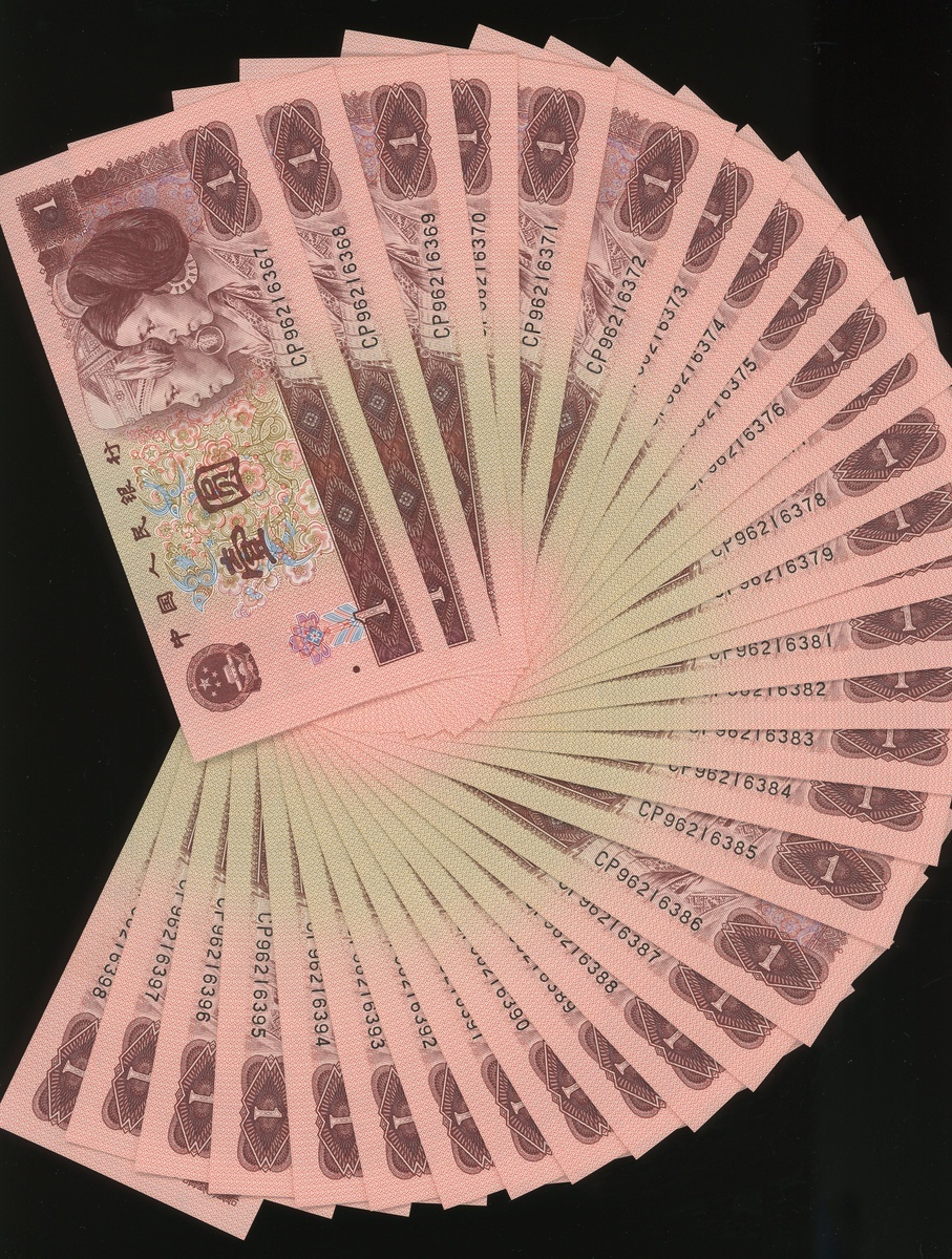 People's Bank of China, 4th series renminbi, 1996, a consecutive run of 32x 1 Yuan, black serial numbers CP96216367-398,