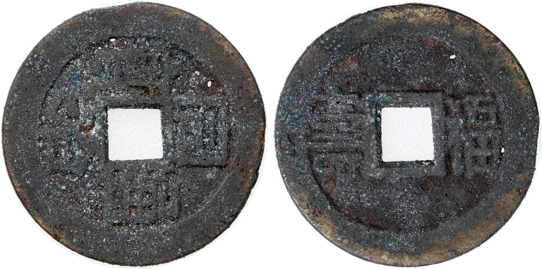 Qing Dynasty, a copper cash coin, Tongzhi Tong Bao, Chinese characters 'Fu' and 'Shou' on reverse, pinholes, good very fine, rare.
