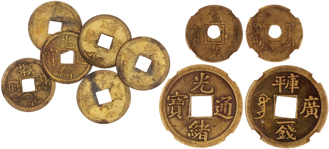 China, a group of 6x 1 cash, Guangxu era and 2x 1 cash, no date, Qing Dynasty, 'Ku Ping Yi Qian', all struck in Guangdong Province (Bao Guang) (6), 'Guang Xu Tong Bao/Ku Ping Yi Qian', and Xuan Tong Tong Bao (2),