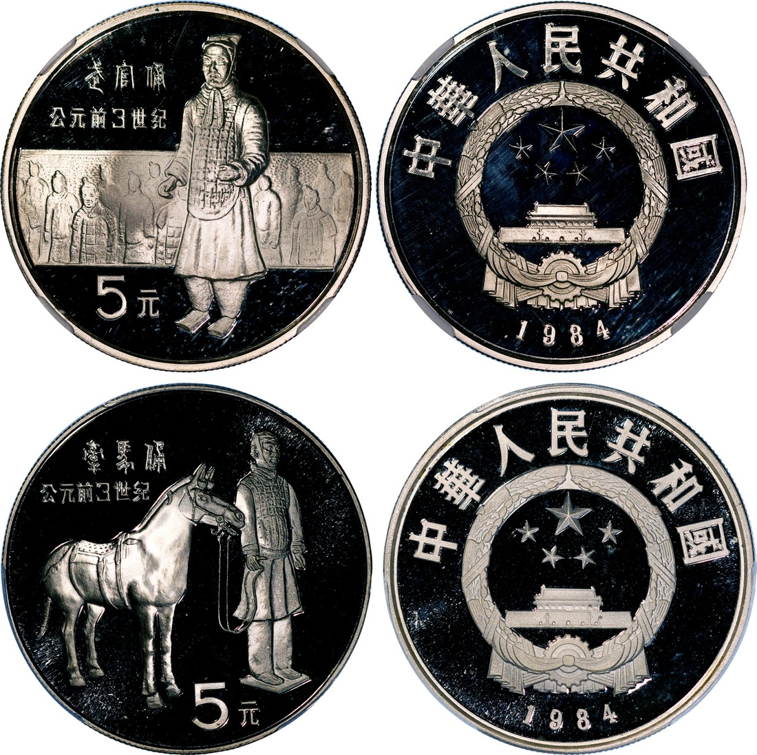 People' Republic of China, lot of silver 5 yuan coins: Terracotta Army series of 1984, Military Officer and Warrior with Horse Statue,
