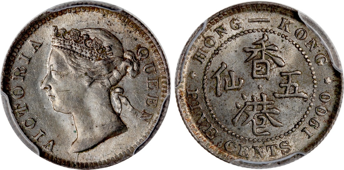 Hong Kong, silver 5 cents, 1900, PCGS MS64