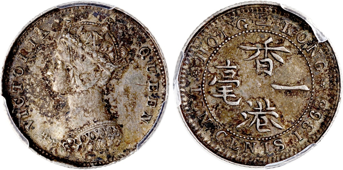 Hong Kong, silver 10 cents, 1868, PCGS XF45