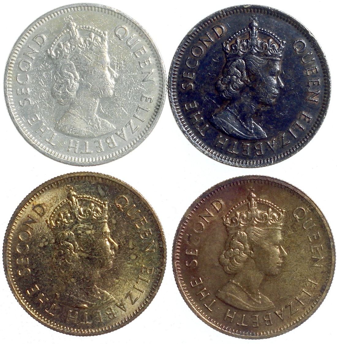 Hong Kong, group of 4x 10 cents, 1974, which looks to be struck from a different metal, and the rest 1980,