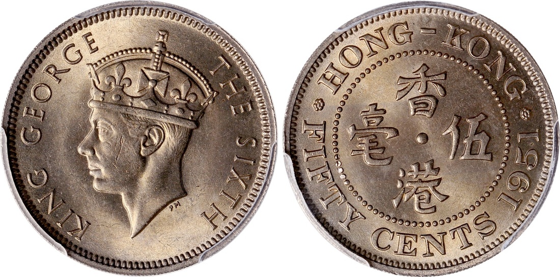 Hong Kong, cupro nickel 50 cents, 1951, PCGS MS65