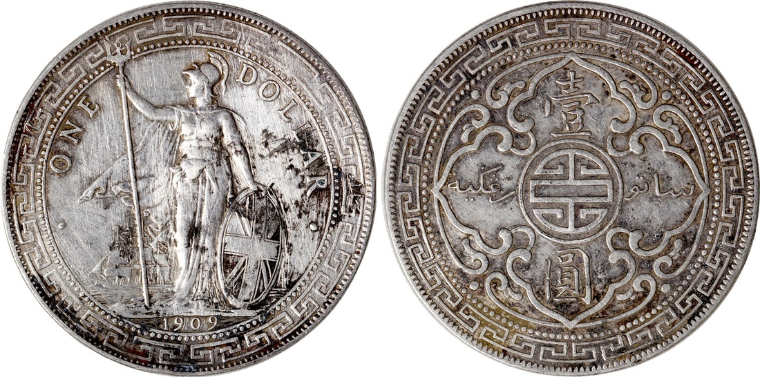 Great Britain, silver $1, 1909B, Trade Dollar, cleaned, good extremely fine.