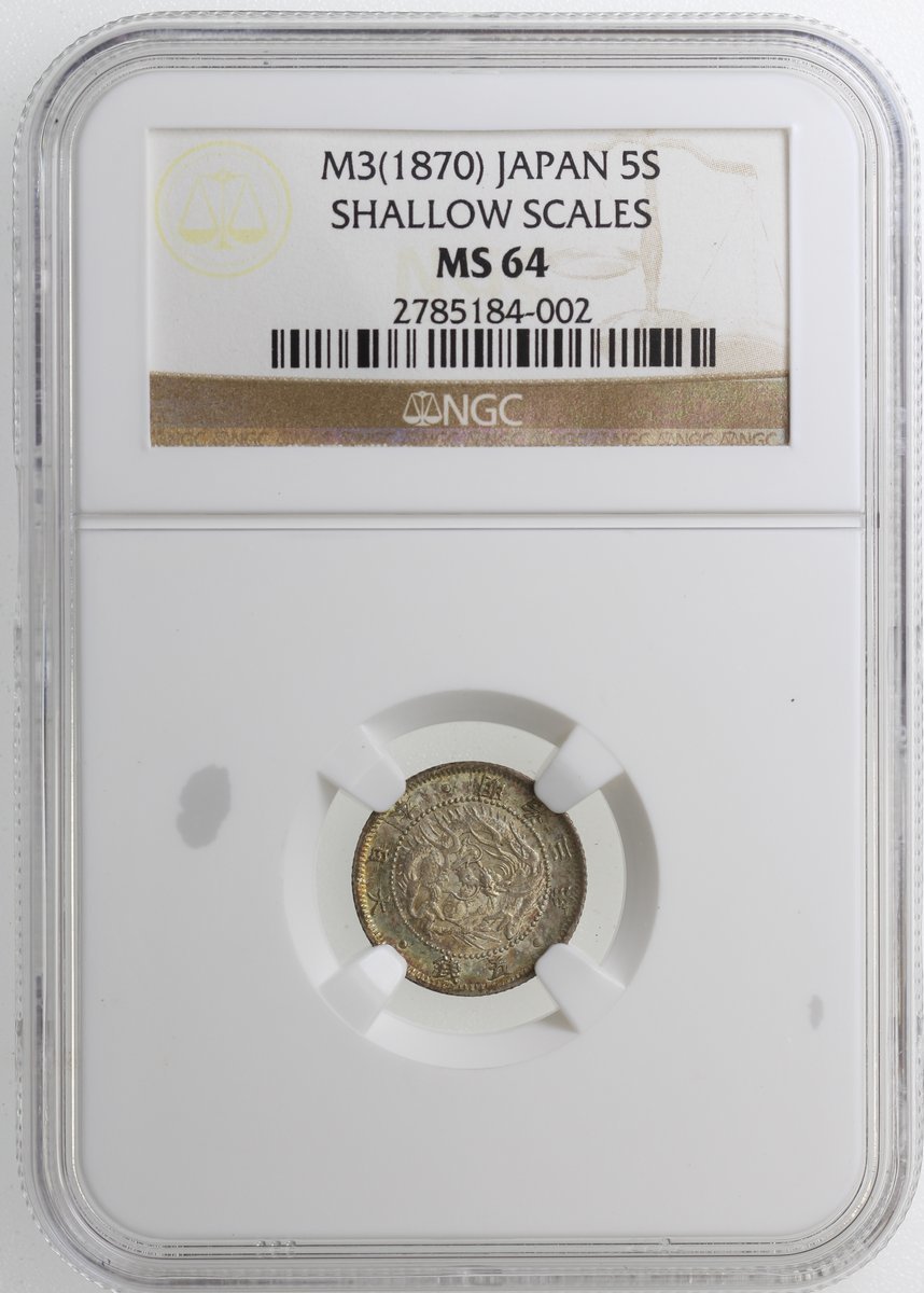 明治三年(1870)日5錢,淺龍鱗,NGC MS64