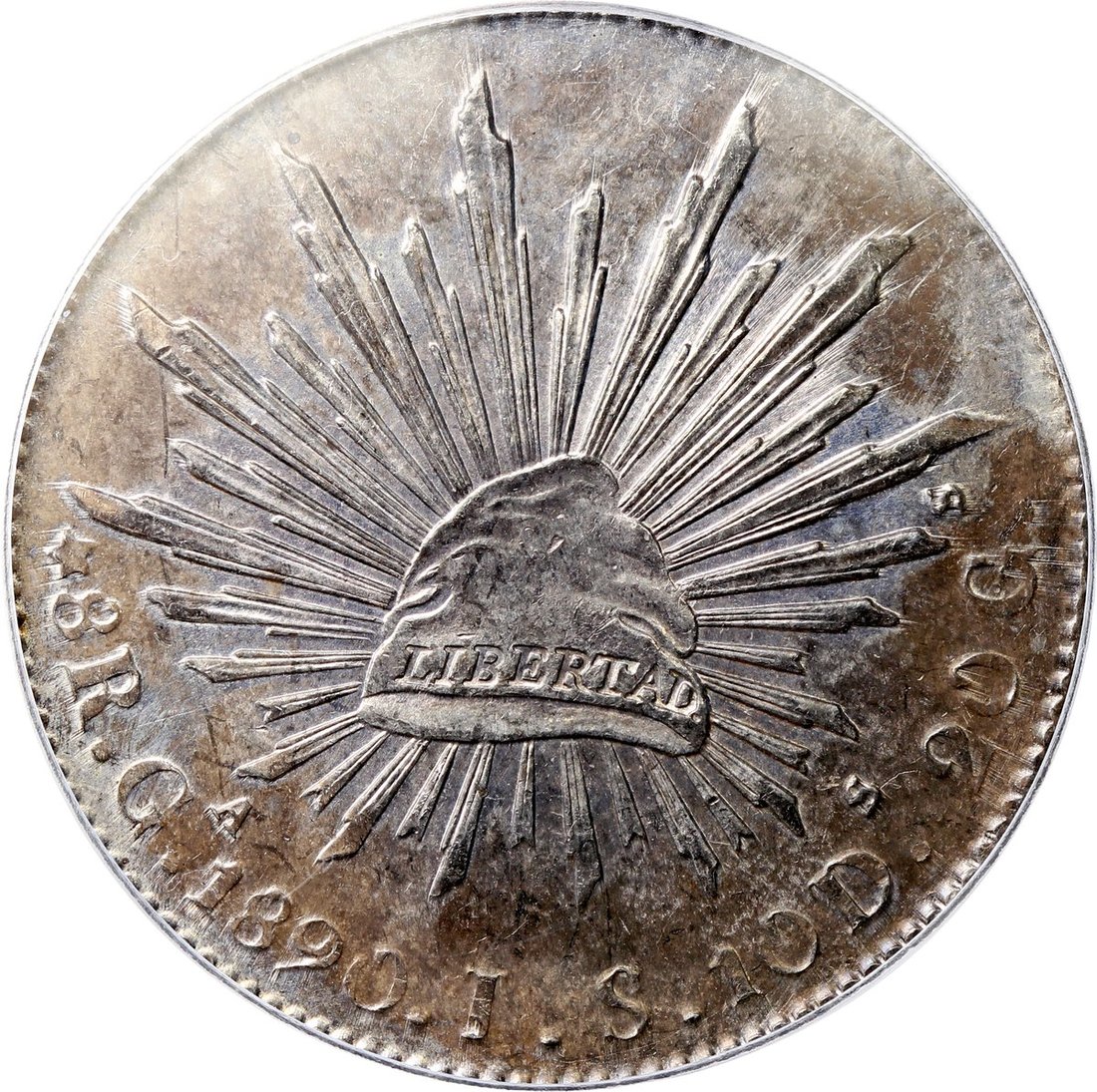 1890-Ga JS年墨西哥8R銀幣,PCGS MS63, 美觀的深色包漿