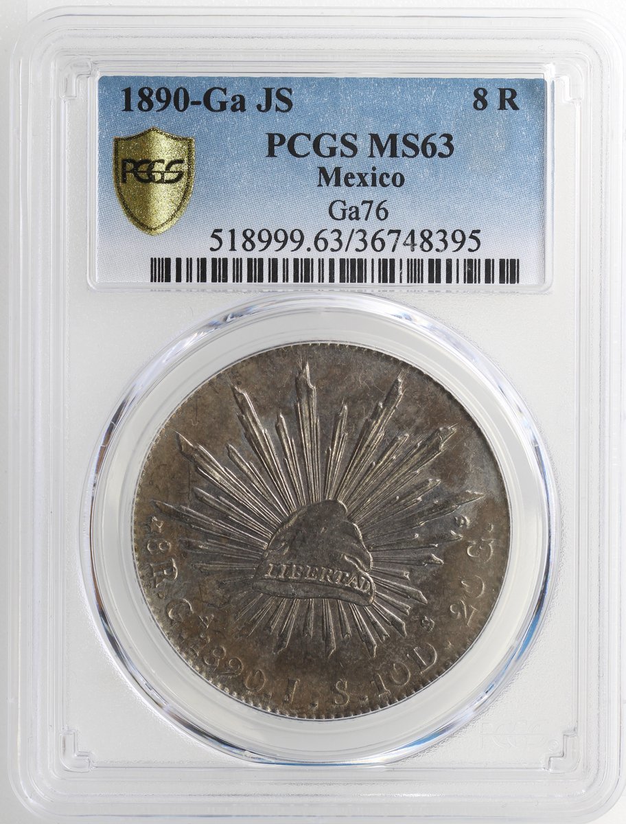 Mexico, silver 8 Reales, 1890-Ga JS, (Ga-76), PCGS MS63, lovely dark satin like fields. Most attractive