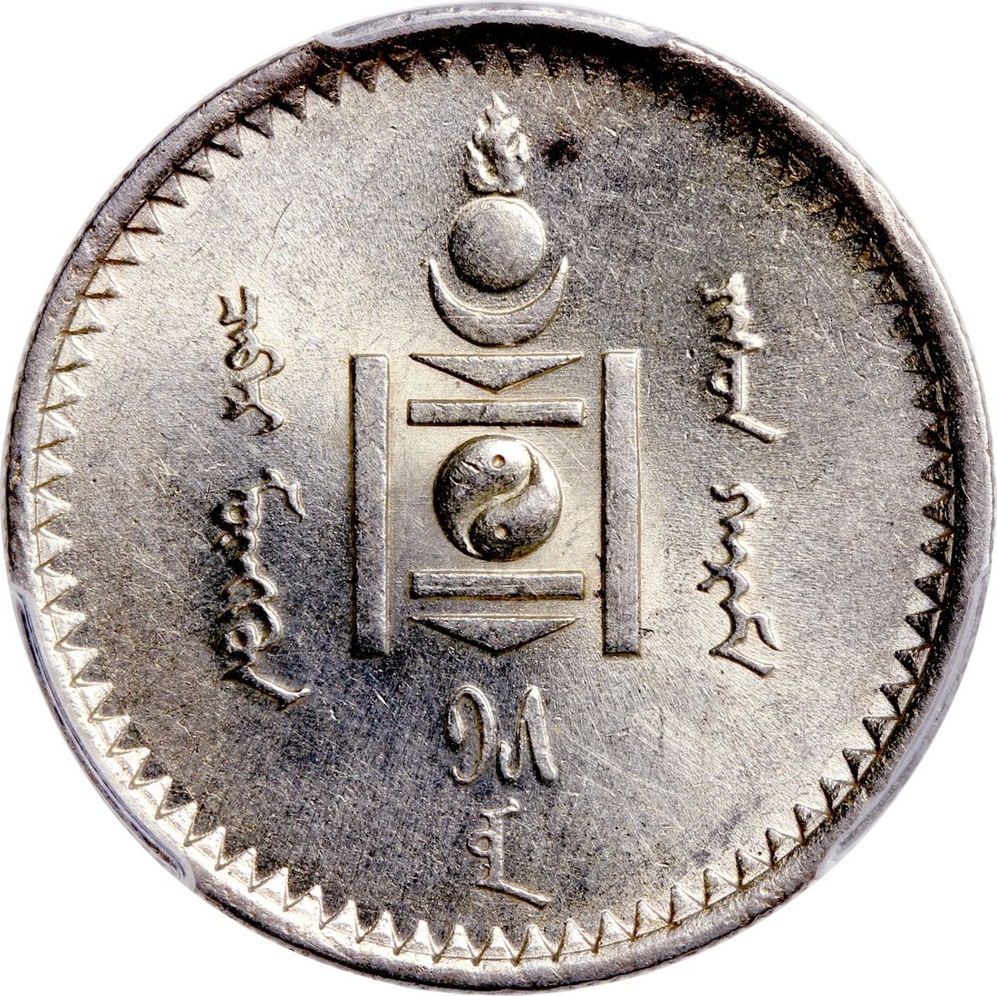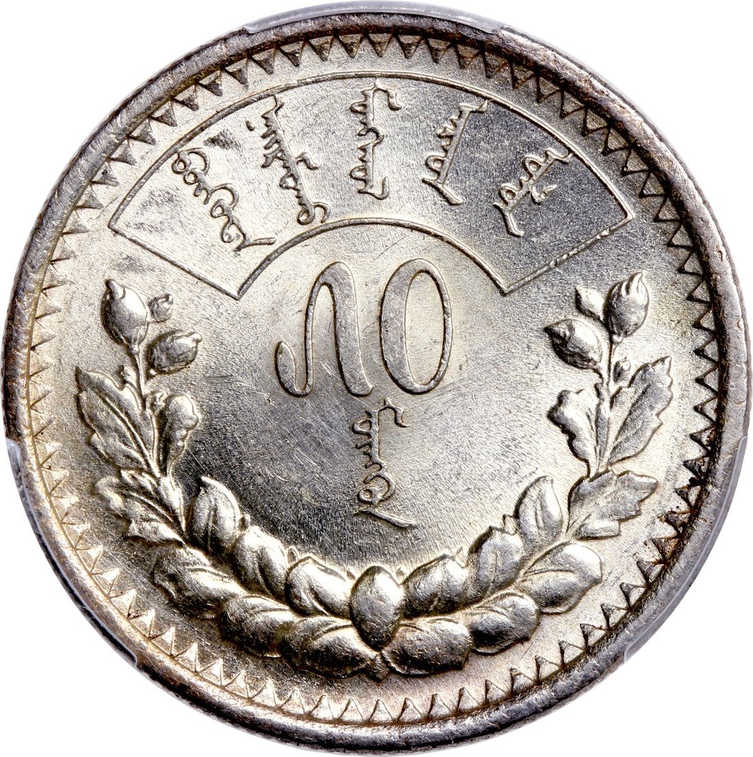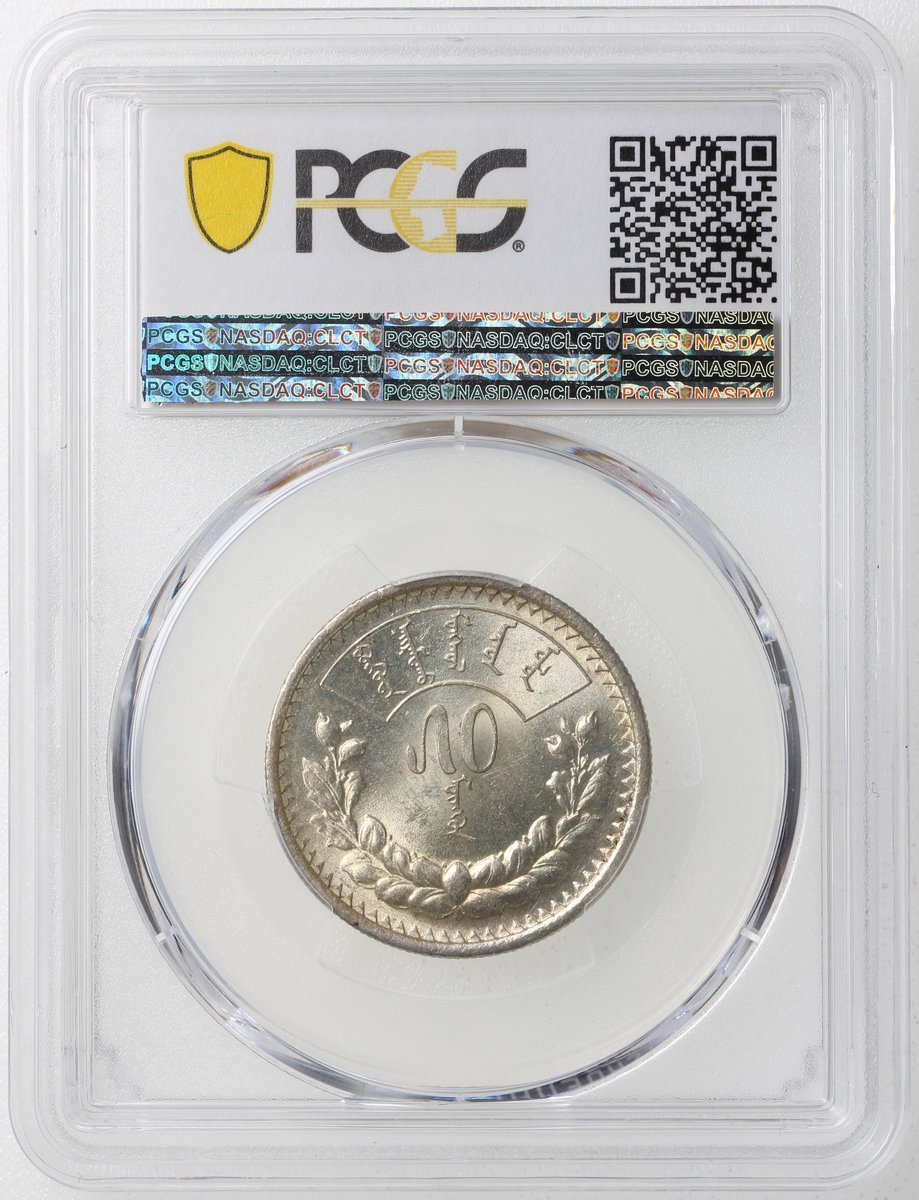 Mongolia, silver 50 mon, 1925, good original luster, PCGS MS62.