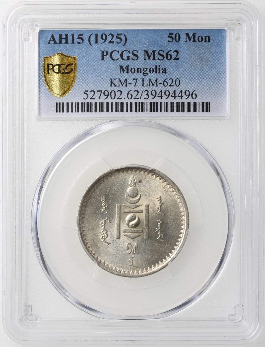 1925年蒙古50分銀幣,漂亮原光,PCGS MS62