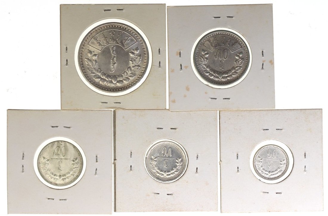 1925年蒙古銀幣一組5枚,面額由10分至1元,GEF或以上品相