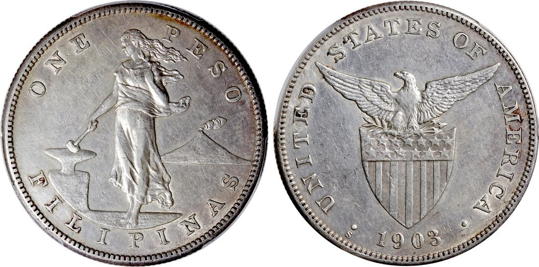 1903-S美屬菲律賓1披索銀幣,PCGS AU Details有工具修補