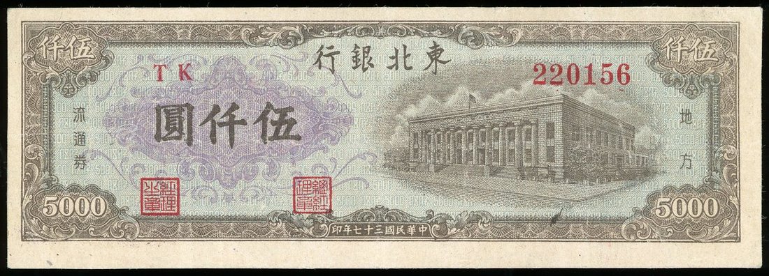 Tung Pei Bank of China, 5000 Yuan, 1948, serial number TK220156, (Pick S3758), extremely fine