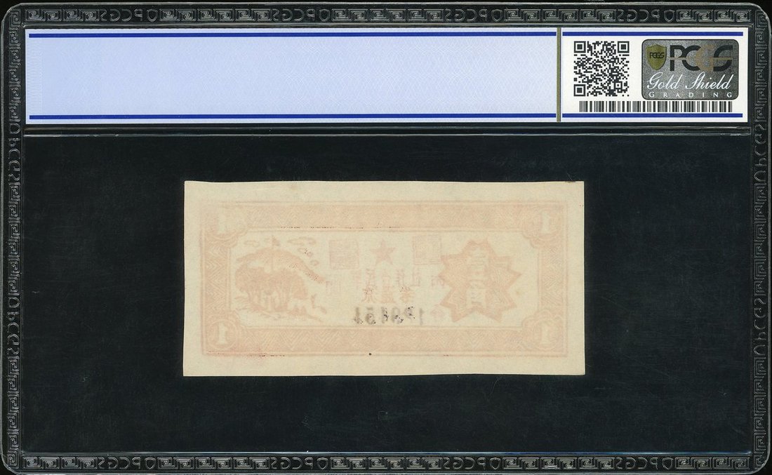 軍民合作社流通券1角,無日期,編號129151,單面印刷,後印版,PCGS Gold Shield 64
