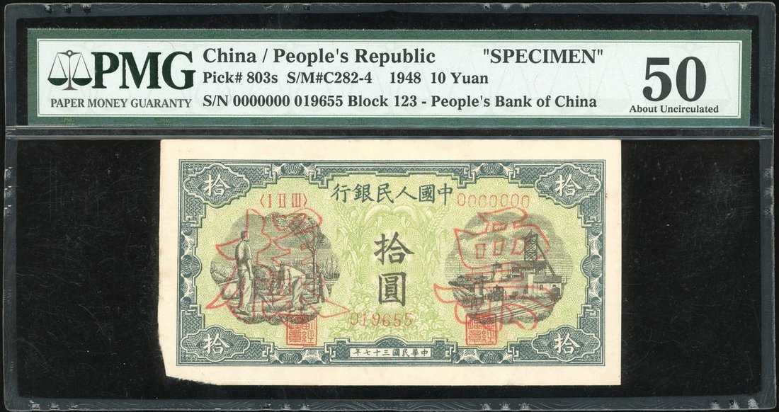 People's Bank of China, 1st series renminbi, 1948-49, 10 yuan, specimen, 'Well Digging', control number 019655,