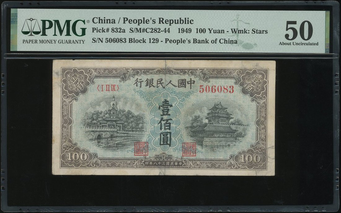 People's Bank of China, 1st series renminbi, 1948-1949, 100 yuan, 'Blue Bei Hai Bridge', 506083,