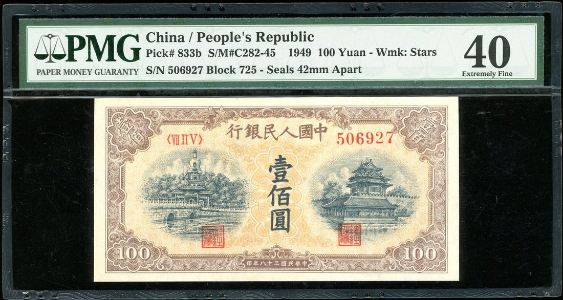 People's Bank of China, 1st series renminbi, 1948-49, 100 yuan, 'Yellow Bei Hai Bridge', wide seal, star watermark,