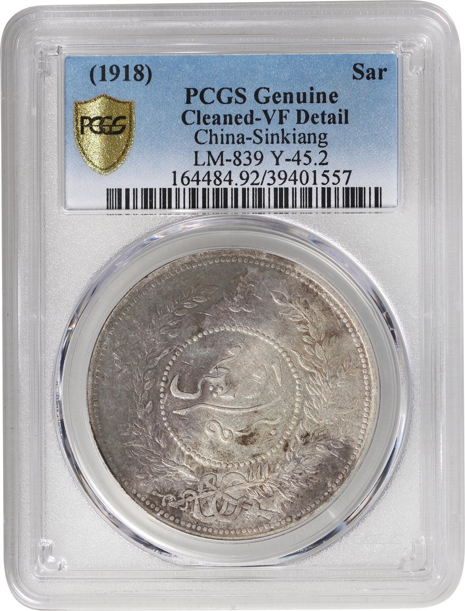民國七年迪化銀圓局造壹兩銀幣,PCGS VF Detail,有清洗