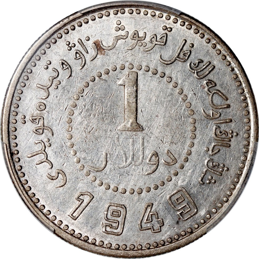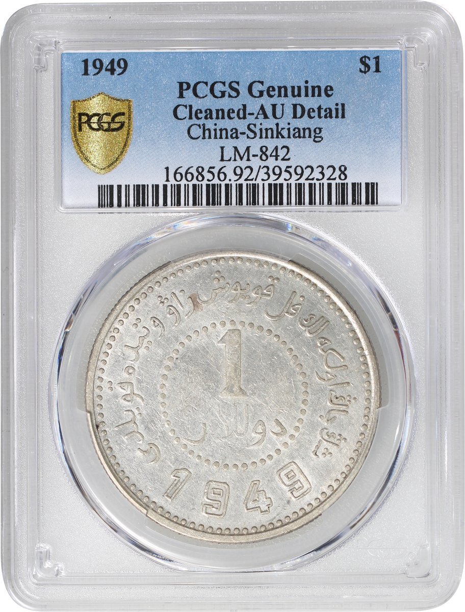Sinkiang Province, silver dollar, 1949, (LM-842), PCGS AU Detail (Cleaned)