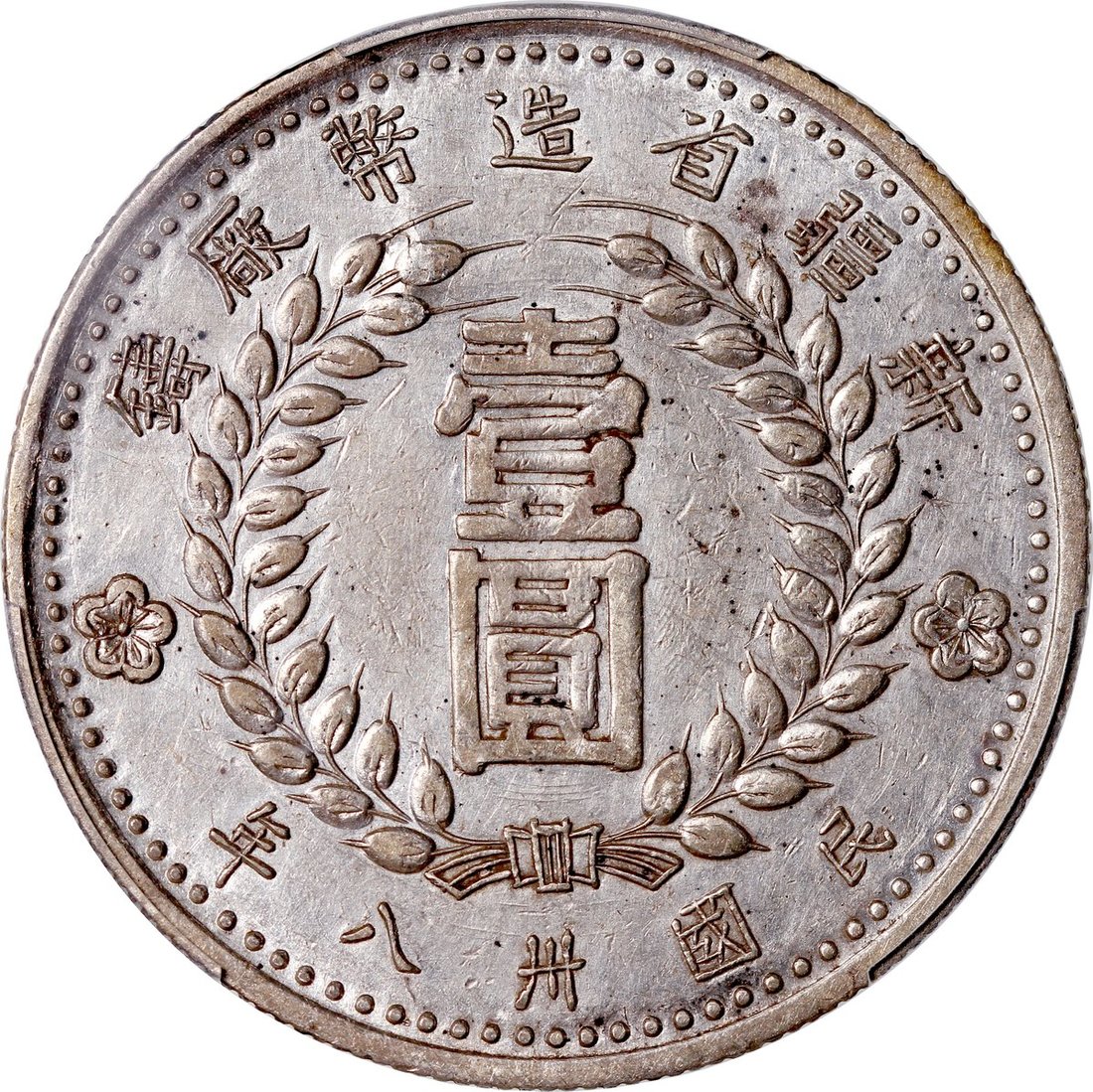 民國三十八年新疆省造幣廠鑄壹圓銀幣,PCGS AU Detail,有清洗