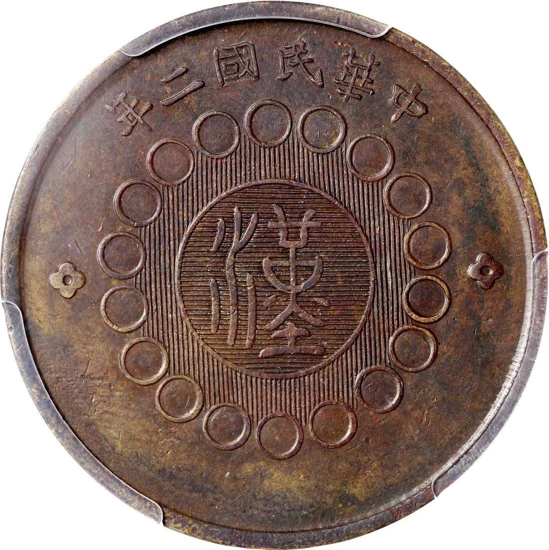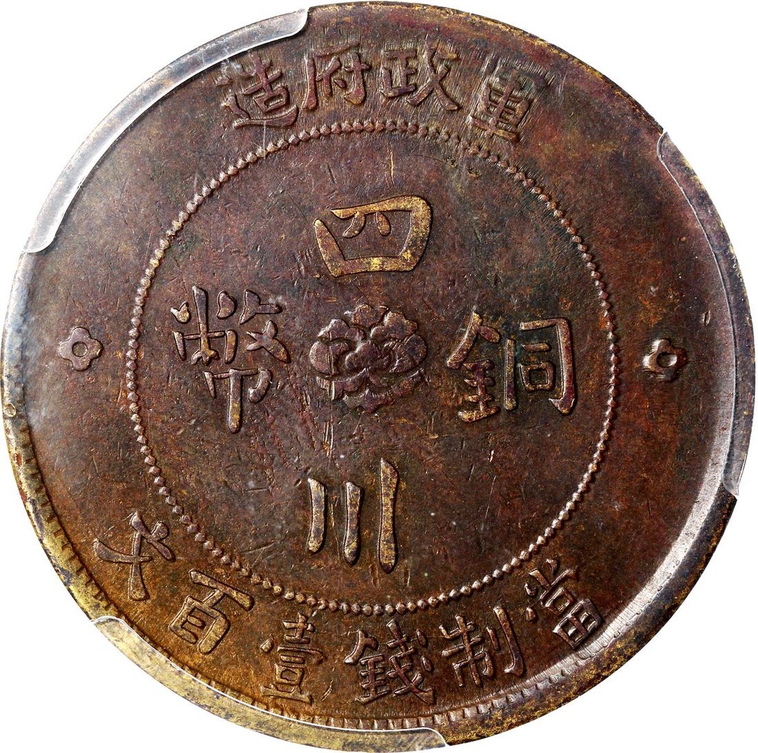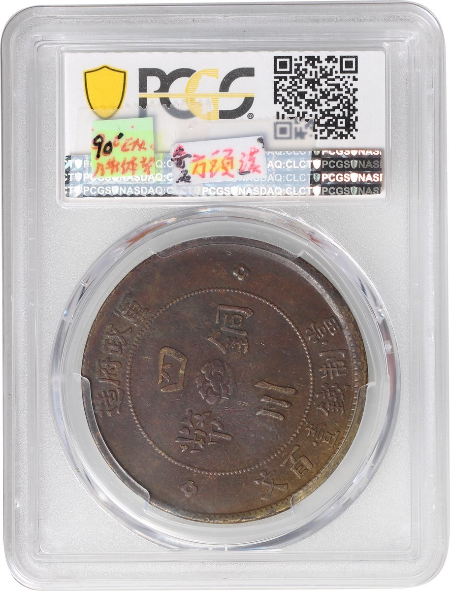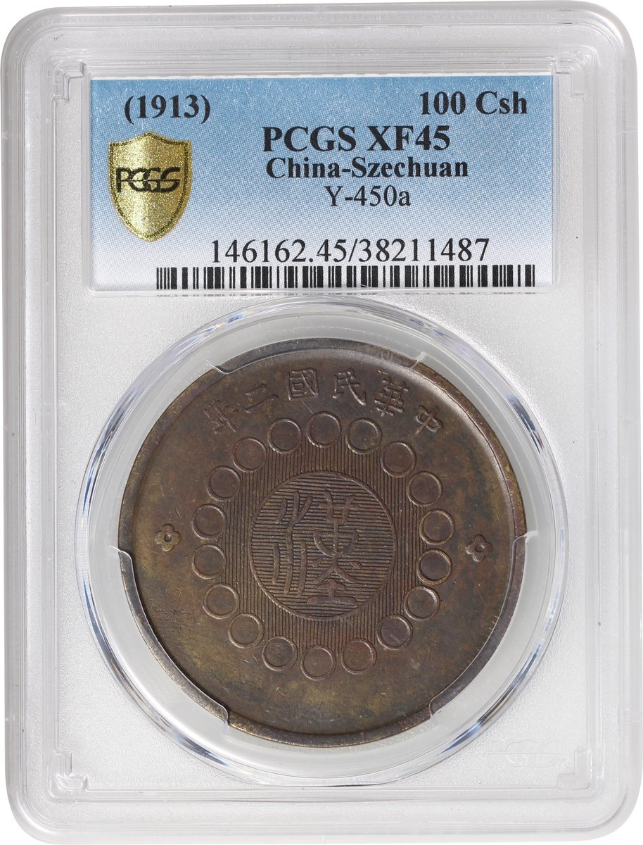 民國二年軍政府造四川銅幣100文,正面中心‘漢’字,PCGS XF 45