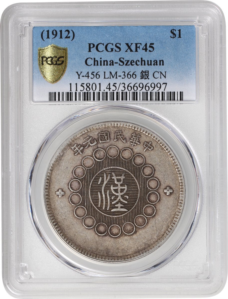 民國元年軍政府造四川銀幣壹圓,中心‘漢’字,PCGS XF45