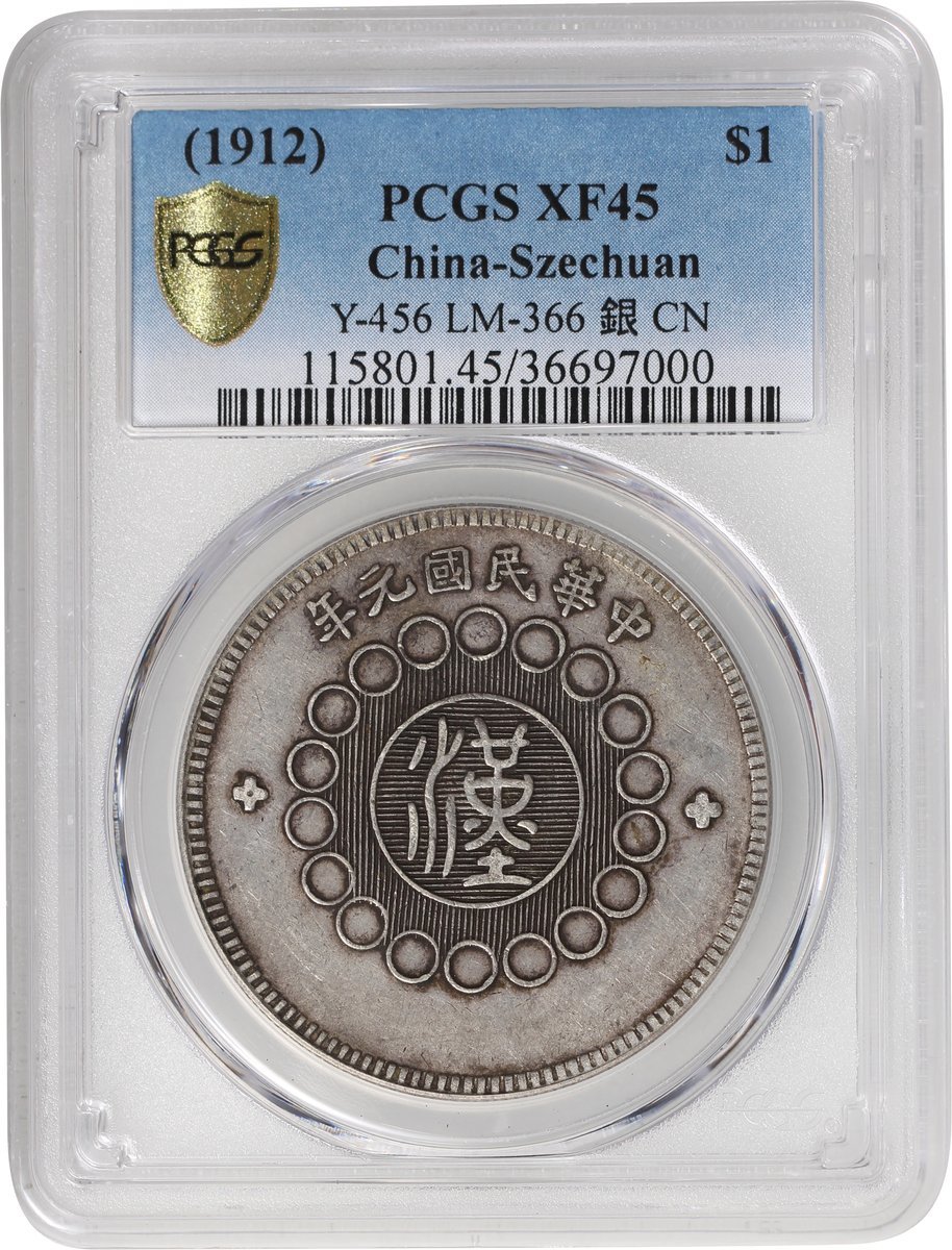 民國元年軍政府造四川銀幣壹圓,中心‘漢’字,PCGS XF45