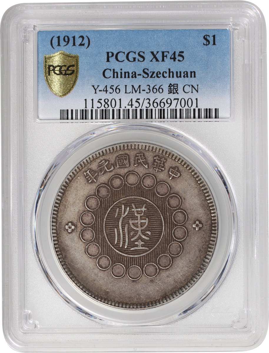 民國元年軍政府造四川銀幣壹圓,中心‘漢’字,PCGS XF45