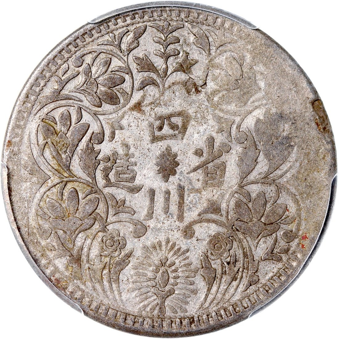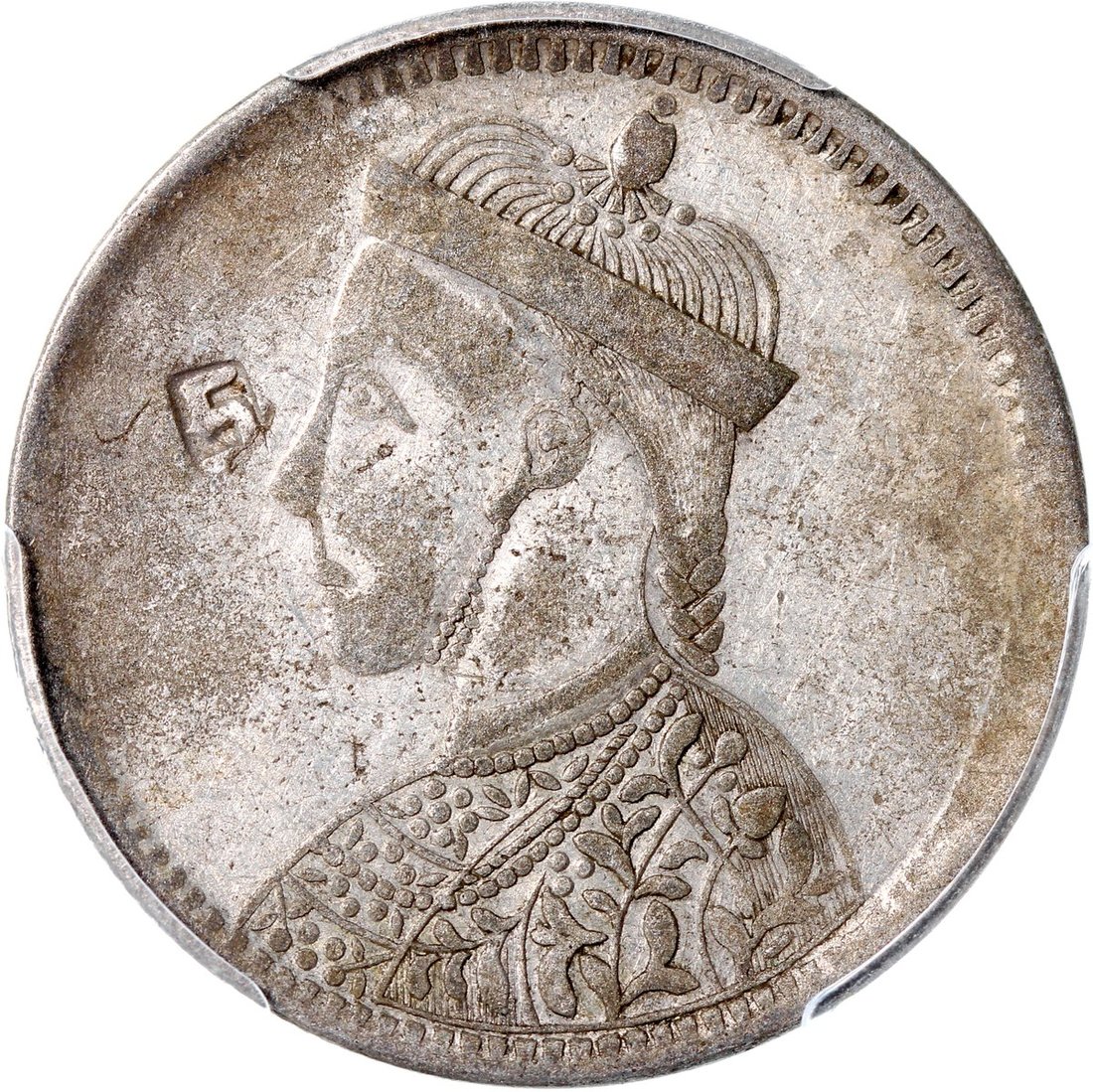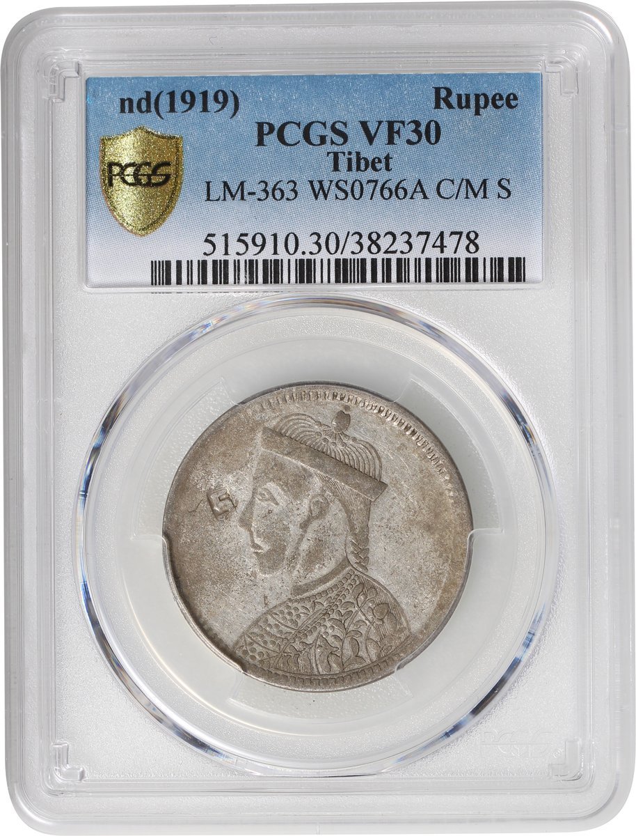 1919年四川省造西藏1盧比,有領直花,左上有佛教符號,PCGS VF30