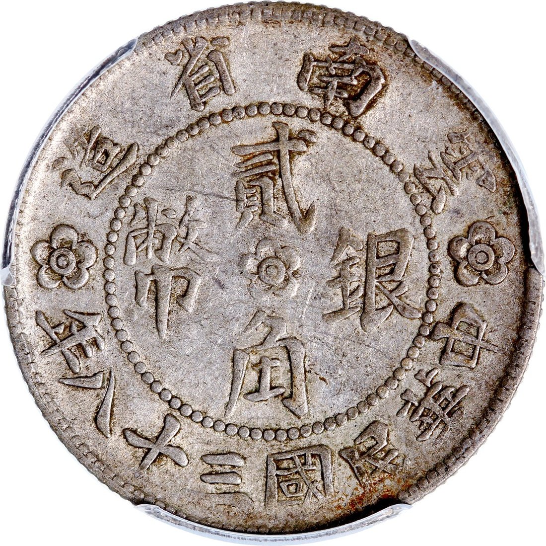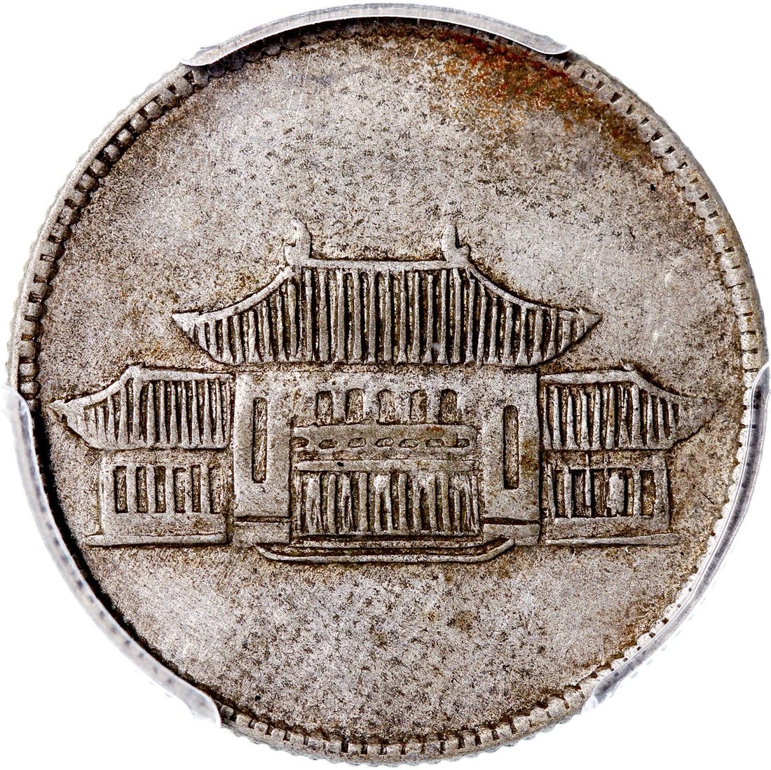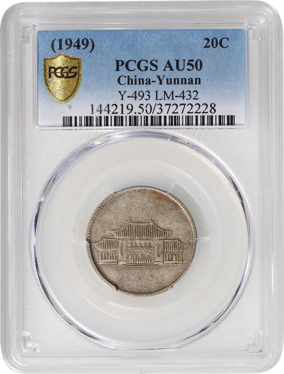 1949年雲南省造銀幣2角,大會堂版,包漿均勻,PCGS AU50